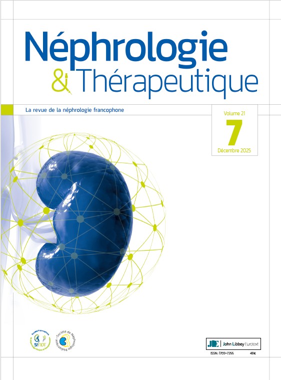 La revue Néphrologie & Thérapeutique a été créée en 2005 par trois sociétés savantes : la Société de néphrologie, la Société francophone de dialyse et la Société de néphrologie pédiatrique (SNP). En 2015, la Société francophone de néphrologie, dialyse et transplantation (SFNDT) a poursuivi le partenariat avec la SNP.